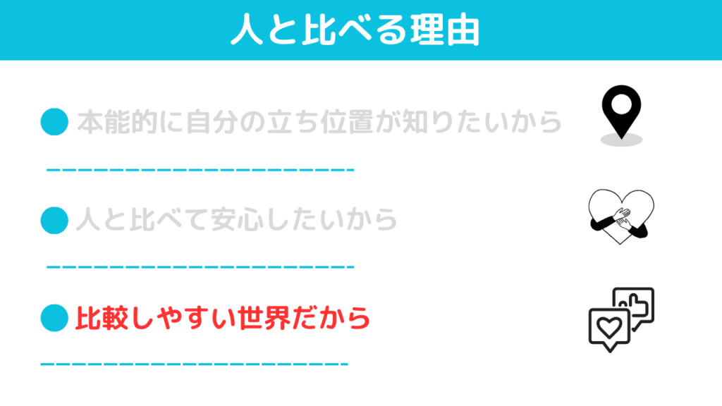 人と比べやすい環境事態が人と比べる理由にになっています。
