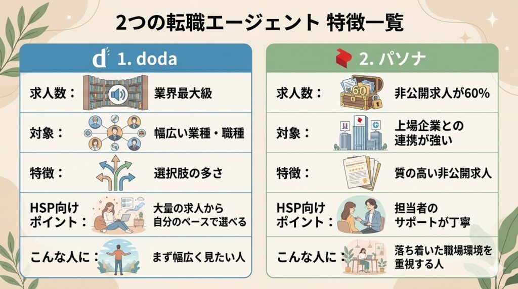 HSPにおすすめ転職エージェント2選【比較表】