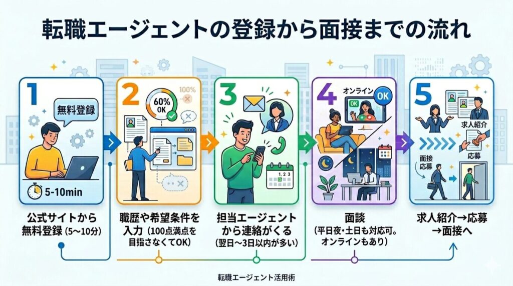 転職エージェントへの登録の流れ